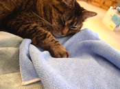 - Our PLUSH BATH TOWEL is just the right thing for drying a pet, large or small, and makes a comfortable blanket. One customer writes: "Our dog, Snoopy, is getting old and has lost quite a bit of weight recently. He gets cold and tends to shiver, so when he does, we cover him with the towel.